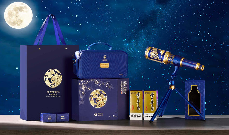 此次與茅臺文旅攜手打造的這款中秋禮盒,將望遠鏡納入其中,藍金配色,顯茅臺文化典雅,鏡筒融傳統(tǒng)與茅臺元素。禮盒插畫鏤空繪飛天滿月,寓團圓,以深邃視野融合中秋與茅臺文化,致敬追夢人。