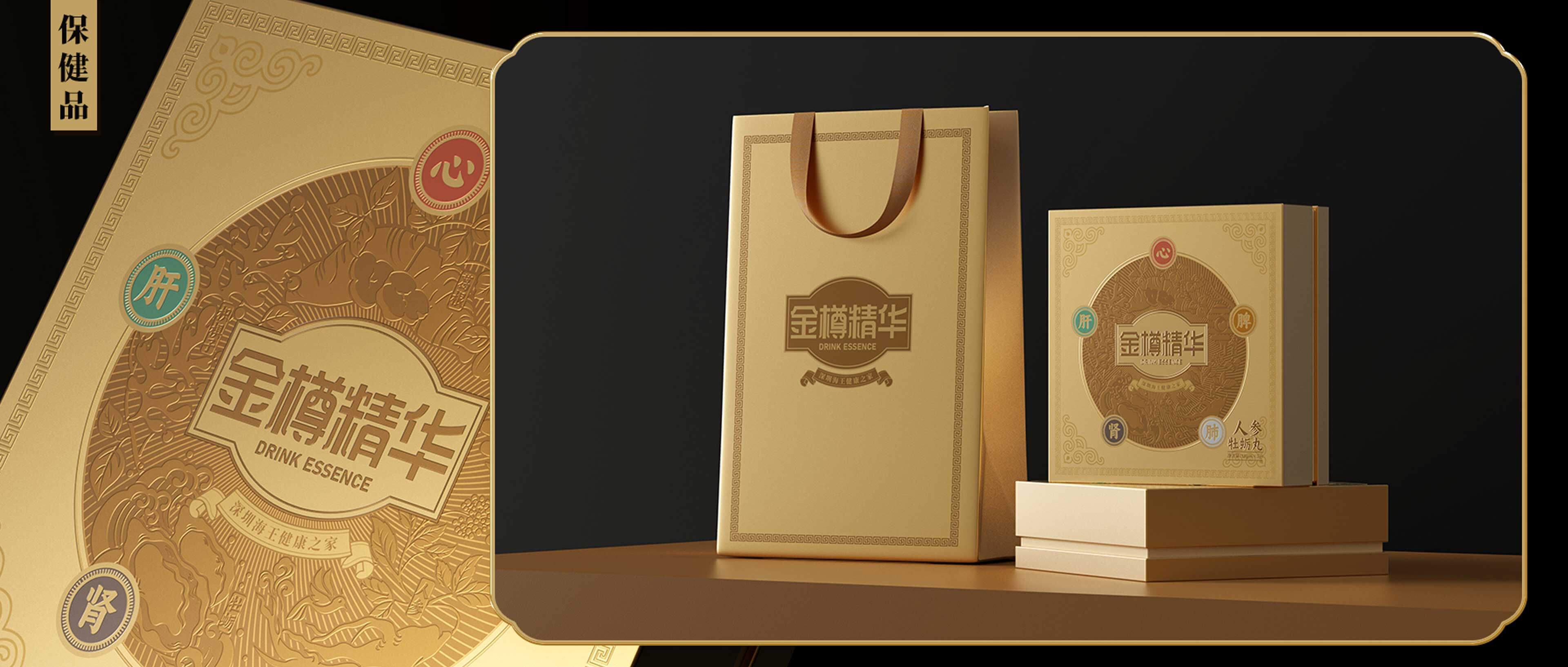將五行概念與精華元素合為一體,打造專(zhuān)屬于“金樽精華”的產(chǎn)品特征,同時(shí)底紋采用回形文的延申,加強(qiáng)品牌特征。